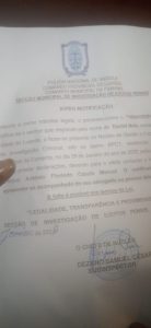 Comando da Polícia da Camama notifica PCA da Konda Marta sem determinar acusação