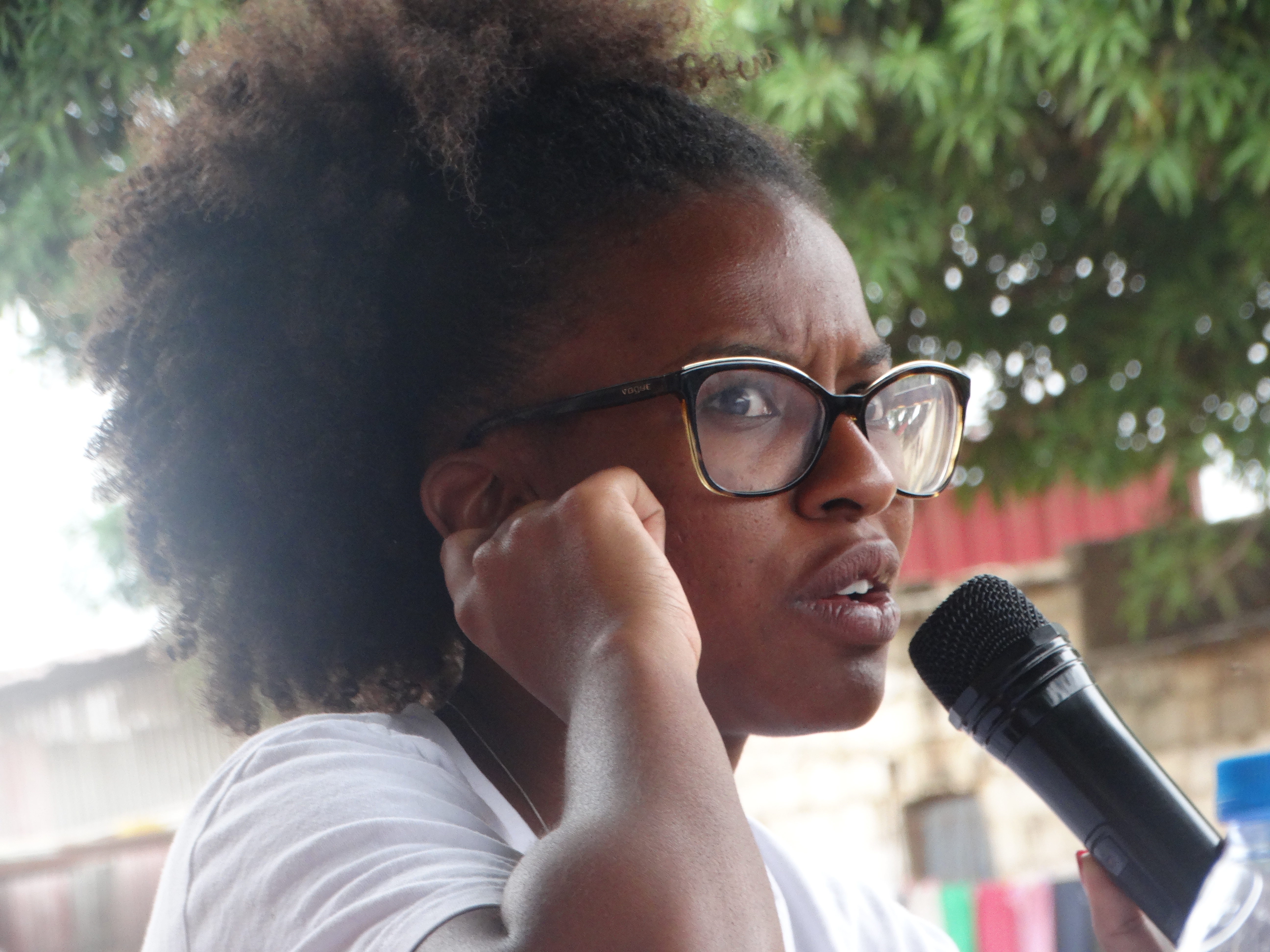 O encontro comunitário promovido pela PLACA – Plataforma Cazenga em Acção levou à rua do Ex-Cala Boca, distrito 11 de Novembro, a antropóloga brasileira Yérsia Assis, que se encontra no País pela terceira vez no âmbito das suas pesquisas para o doutoramento, e Luaty Beirão, activista cívico e artista angolano, que partilharam debaixo de uma mulembeira, numa espécie de um “Ondjango, T´Chota, Jango”, adjacente ao hospital Paz, situada nesta comunidade.