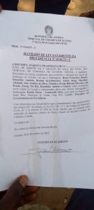 No mandado de levantamento da providência nº 146/25-C, que a empresa Konda Marta tinha intentado a que o Club-K teve acesso, a Juíza de Direito, Joaquina Pilartes da Silva, da 3ª Secção do Cível do TCL, “manda, a qualquer funcionário de justiça competente, que conforme ordenado nos autos de embargos de terceiro, em que é embargante, Bento Francisco Bento, Sebastião António, Boima Investimentos, Abrão Jorge Martins, Adelaide José António da Silva, Cintchya Jossila Ribeiro Silvestre do Prado, Zhong Xin Hui, Kizedioko António e outros todos residentes na cidade de Luanda e representados pelos seus advogados e embargada, Konda Marta – Comercial, LDA, com sede no Bairro da Sapú Bita, município de Viana, em Luanda, proceder ao levantamento da providência.