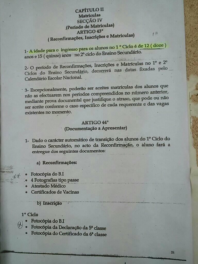 Abaixo publicamos o documento elaborado pelo ministério da educação que exclui quem tenha 13 anos de idade do ingresso no 1º e 2º ciclo de ensino para os maiores de 15.