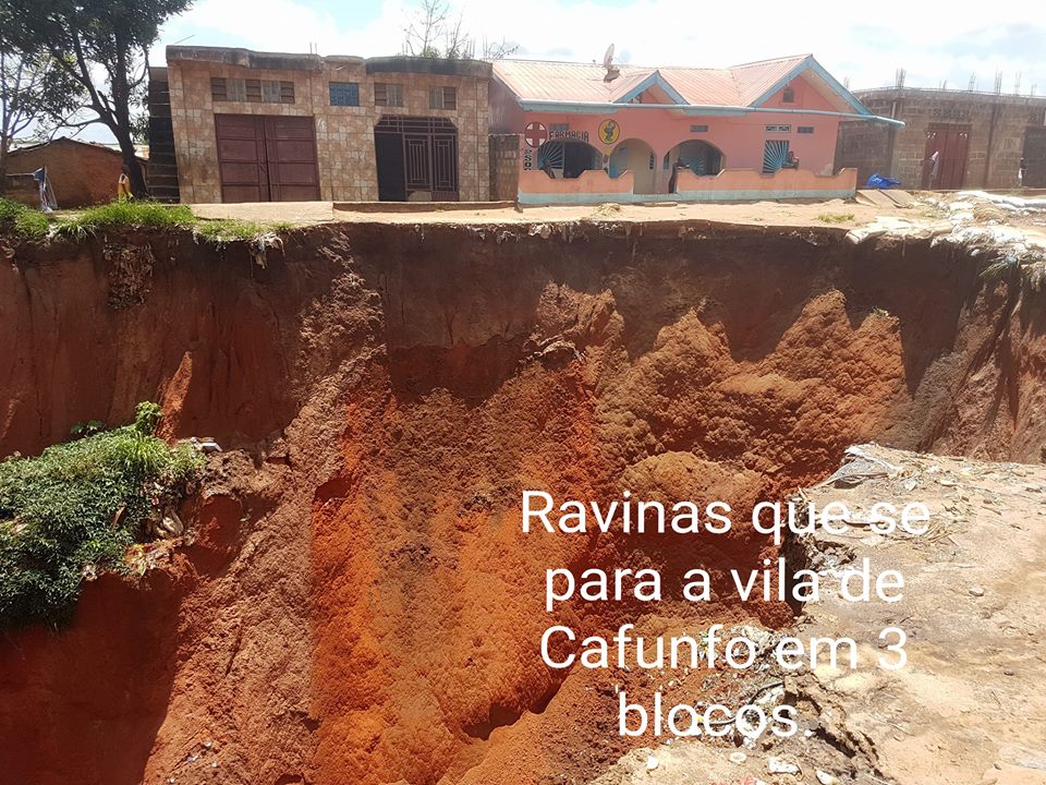 8 – A vila de Cafunfo está a ser praticamente “engolida” pelas gigantescas ravinas. Os moradores estão a perder as residências para esse “monstro terrestre”, como as fotografias abaixo ilustram. Os populares não vêem a intervenção do governo provincial. Entretanto é a província onde duas empresas exploram diamantes.
