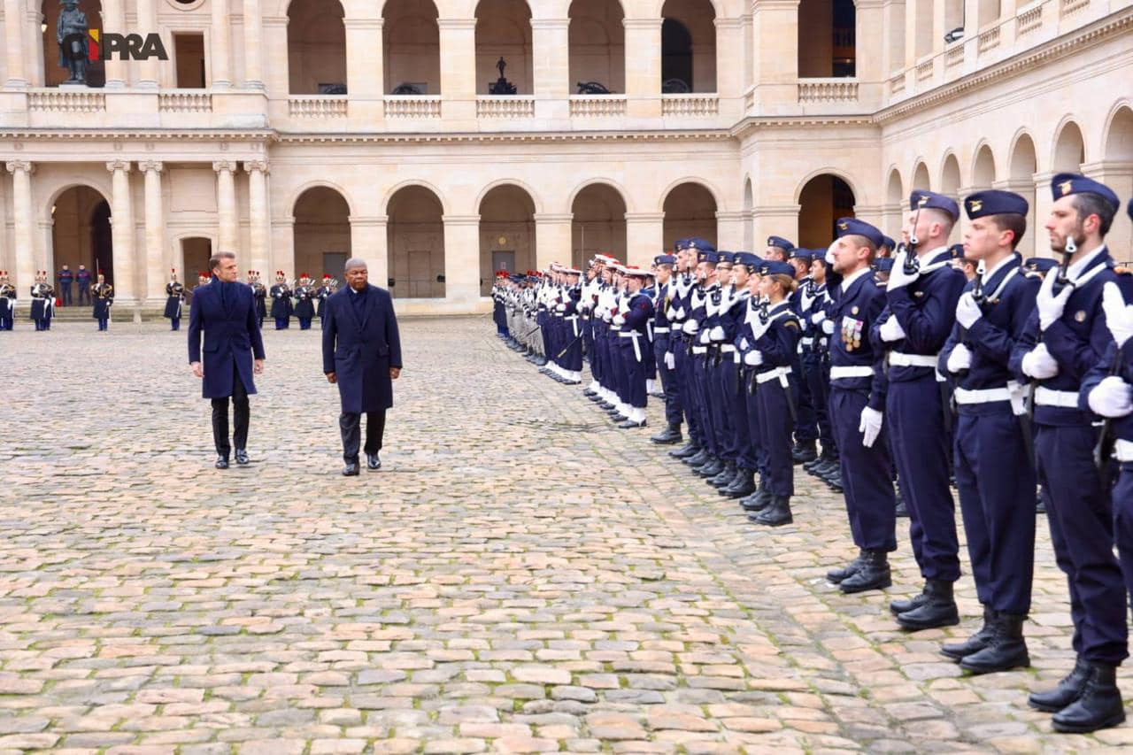 Com o Presidente João Lourenço esteve o Presidente Emmanuel Macron, num registo extraordinário do protocolo observado tradicionalmente, onde os Presidentes franceses não se deslocam ao Palácio “Os Inválidos” para acompanhar Chefes de Estado convidados.