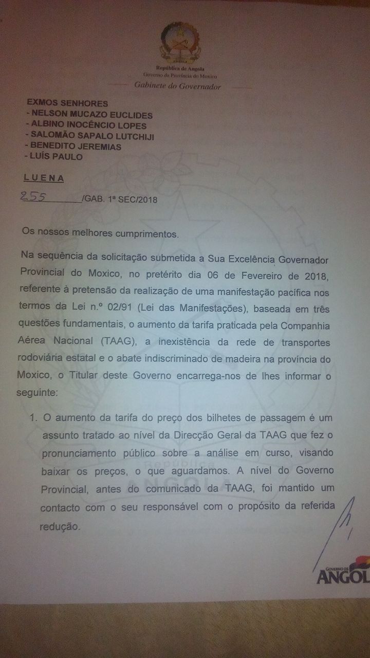 Desde que a carta comunicando intenção de manifestação deu entrada no Governo Provincial do Moxico, a 6 de Fevereiro, se criou um reboliço como nunca antes visto nas hostes palacianas regionais.