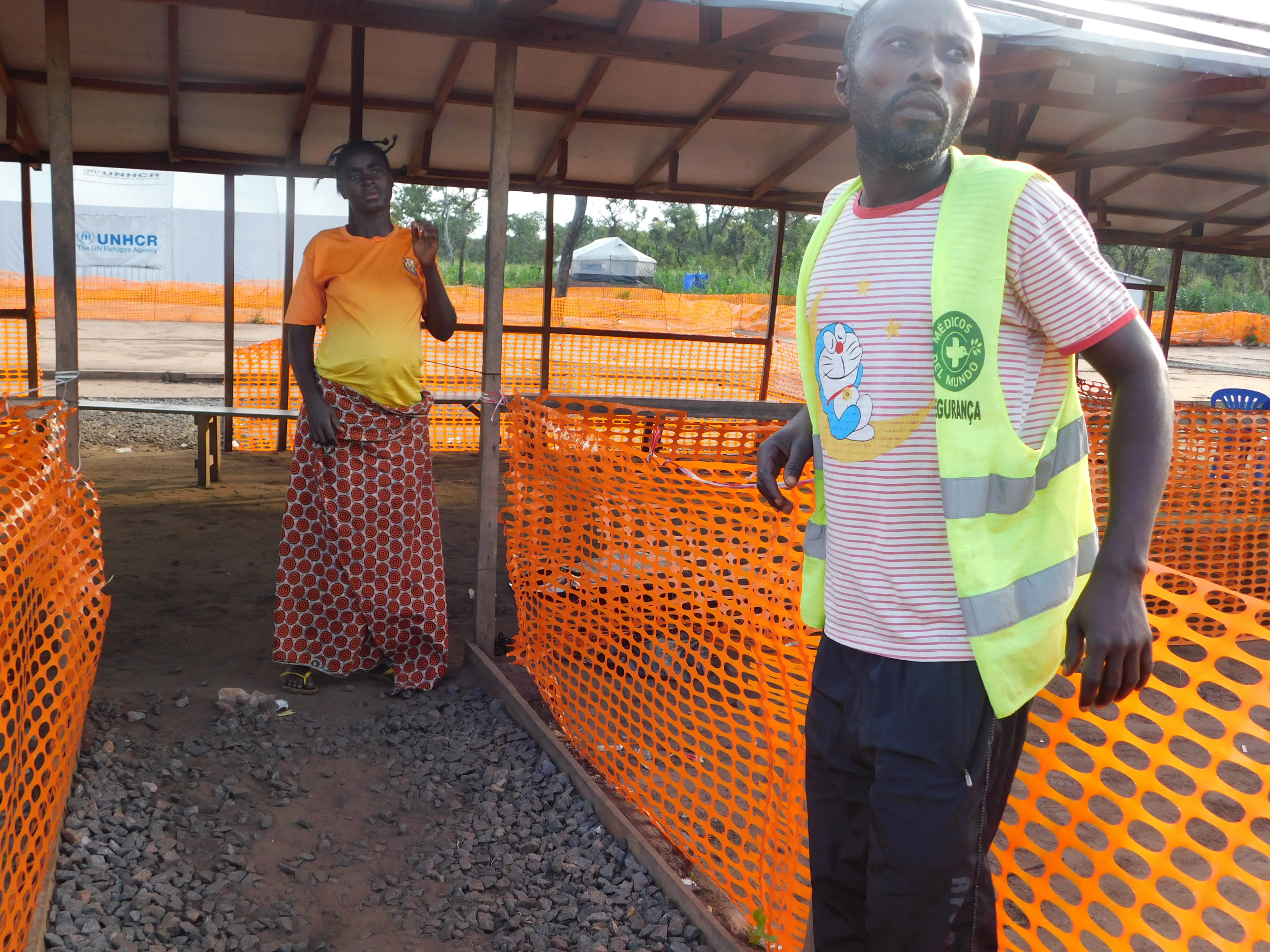 Logo à entrada é possível observar à distância a movimentação de pessoas, motorizadas e viaturas num “movimento de entra sai”. O arraial é coberto de tendas montadas com símbolos das Nações Unidas, tendo o posto de assistência médica instalado na entrada principal, antes do controlo da Polícia Nacional, órgão que assegura o campo que acolhe os refugiados.
