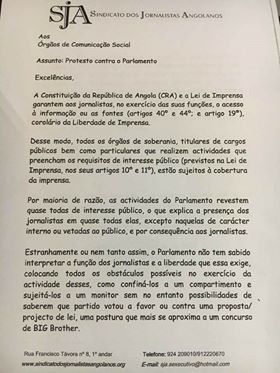 Desta forma, o documento do SJA é directo: “apela à solidariedade dos responsáveis dos órgãos de comunicação social no sentido de boicotarmos à próxima sessão do Parlamento”, acrescentando que “os jornalistas exigem respeito, nos mesmos termos que estão sujeitos a deveres”.