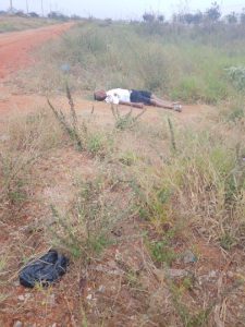 Um homem, que aparenta ter 30 anos (na foto) foi executivo com três disparos de armas de fogo, na madrugada deste domingo, 14, ao lado da maquete de publicidade do projecto habitacional da empresa Konda Marta, nas proximidades do Campus Universitário da Universidade Agostinho Neto, no município do Camama, em Luanda.